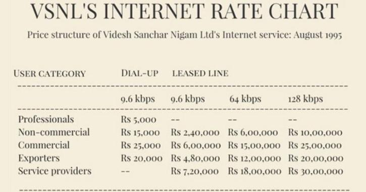 How many of you remember this VSNL internet tariff in India ??? pic.twitter.com/slYz6dtNf2