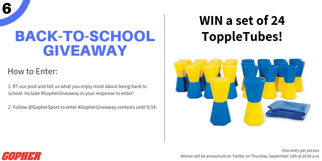 #GopherGiveaway is here! Retweet this post and tell us what you enjoy most about being#backtoschool! Include#GopherGiveaway in your response to enter! Good luck!#PhysEd#ElemPE#SecPhysEdpic.twitter.com/sWzfSEuFUu