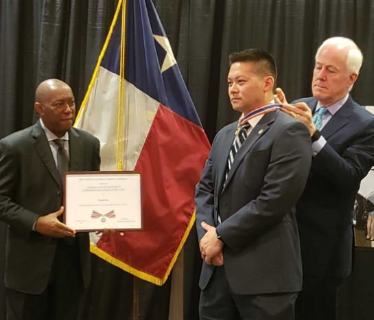 #FBI, Houston Special Agents received the Congressional#BadgeofBravery. Their heroic actions during Hurricane Harvey saved dozens of Texans trapped in surging floodwaters. We look forward to continuing to protect#Texas Gulf Coast residents.pic.twitter.com/HlMk1kNrur