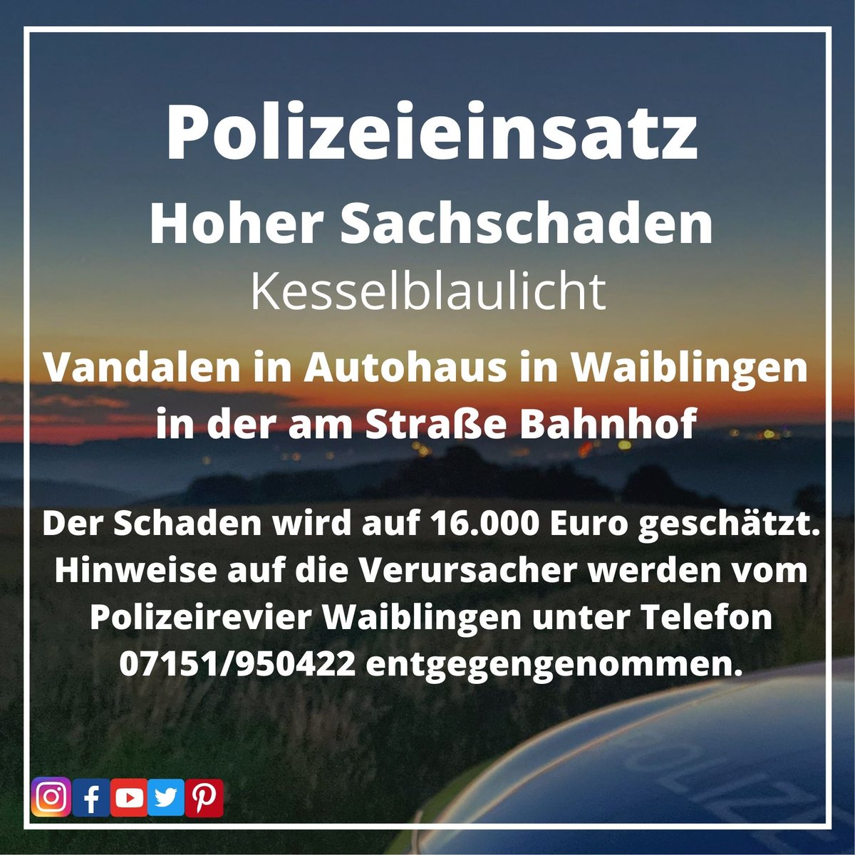 #Waiblingen In der Nacht von Samstag auf Sonntag beschädigten Unbekannte in der Straße#Bahnhof 18 Fahrzeuge eines Autohändlers. pic.twitter.com/j8rmkDBaCW