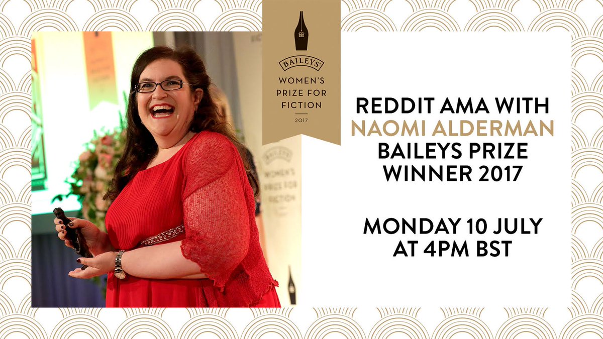 #BaileysPrize winner Naomi Alderman? Don't miss Naomi's@reddit AMA on Monday! http://bit.ly/2spNwVD pic.twitter.com/vv422Wsh3w