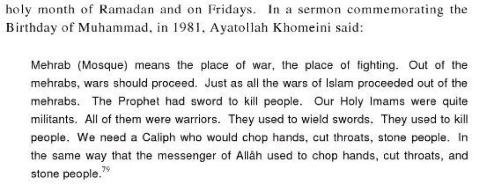 Mehrab (Mosque) means the PLACE OF WAR, the PLACE OF FIGHTING. ~Ayatollah Khomeini, 1981