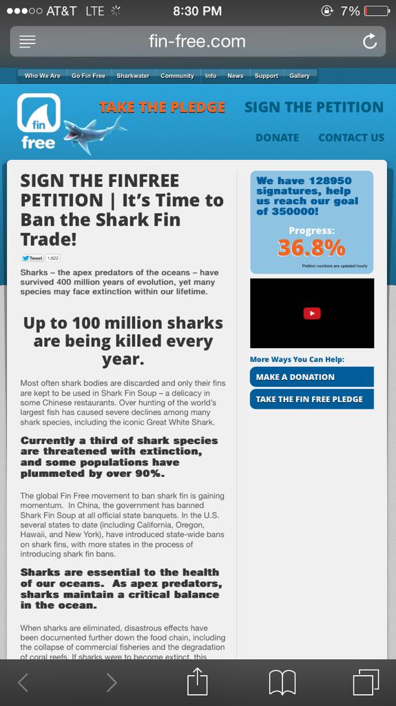 SIGN TO BAN SHARK FINNING AND THE SELLING OF SHARK FINS! http://fin-free.com/petitions/