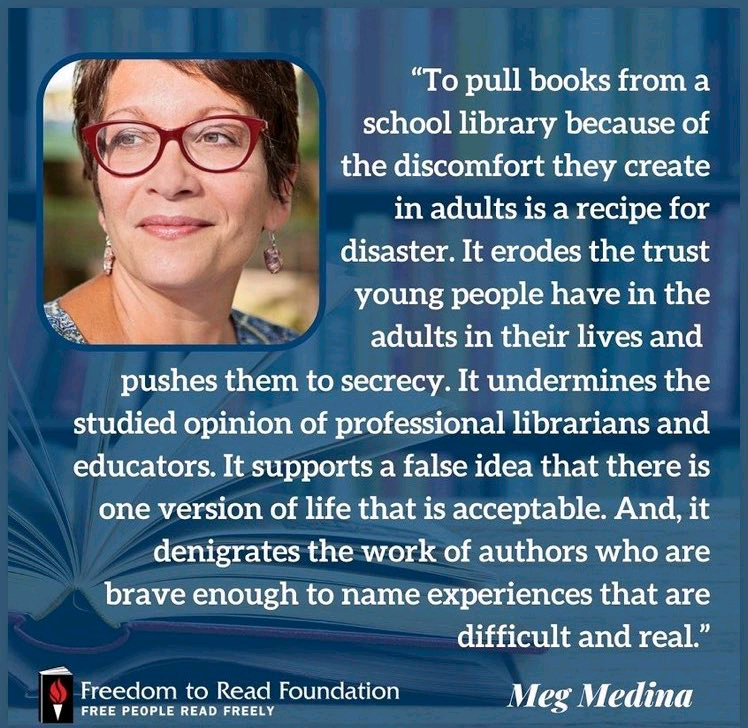 @Meg_Medina#bannedauthor#bannedbooks https://megmedina.com/2021/10/30/stop-the-madness-banning-books-is-not-the-answer/ … -