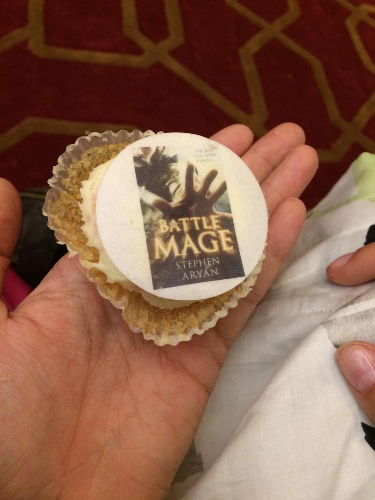 #BATTLEMAGE cupcakes at SRFC this morning - debut by@SteveAryan out from@orbitbooks in Septemberpic.twitter.com/ANyOqS1IAi