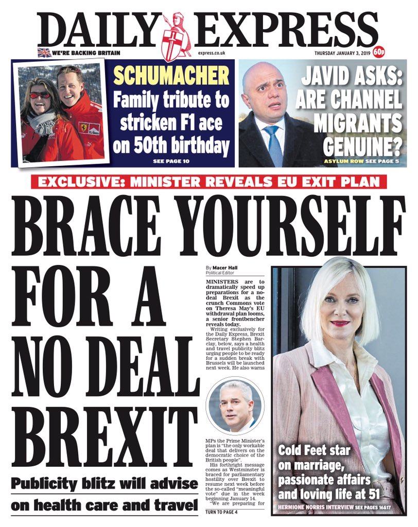 Thursday’s Express: "Brace yourself for a no deal Brexit"