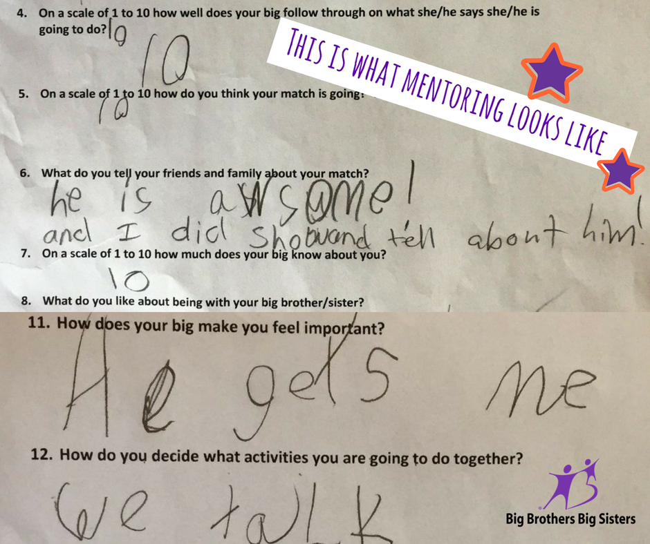 A recent match monitoring done by one of our caseworkers was too sweet not to share. This is what mentoring looks like and shows so genuinely, the impact a mentor has on a child.