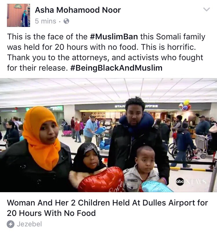 #MuslimBan and it's Black too! This Somali family was held for 20 hours no food.#BeingBlackAndMuslim#NoBanNoWallpic.twitter.com/Vzx3kEkrTQ