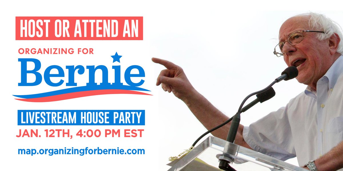 Happy New Year! Make a resolution to show Bernie we're ready for a 2020 run! Sign up to host or attend a January 12 livestream house party! http://map.organizingforbernie.com