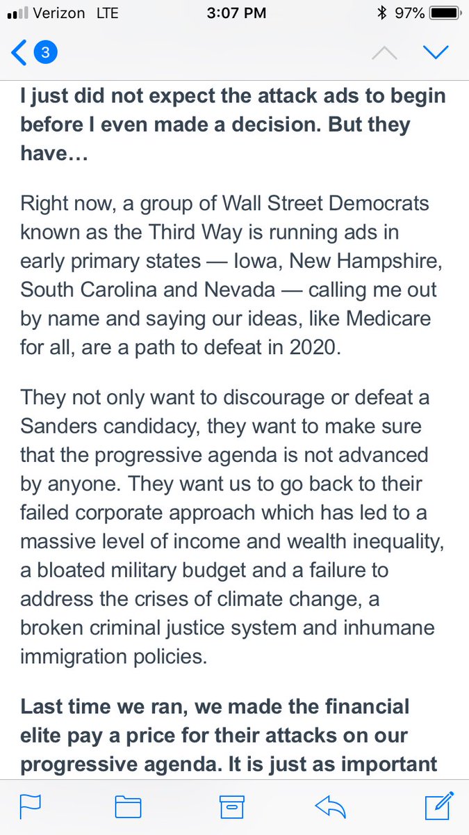 It's outlining his 2019 agenda (the subject line is 2019). If we want it to become his 2020 platform, we're going to have to show up and prove he has an organized movement for him to win. That starts January 12th: http://map.organizingforbernie.com