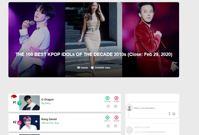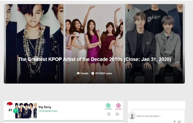 [KINGCHOICE POLLS/END RESULTS] *The Greatest KPOP Artist of the Decade 2010s: #1 BIGBANG https://kingchoice.me/topic-the-greatest-kpop-artist-of-the-decade-2010s-close-jan-31-2020-1228.html … *The Best and Most Meaningful Fandom Name: #1 VIP https://kingchoice.me/topic-the-best-and-most-meaningful-kpop-fandom-name-531.html … *The 100 Best Kpop idols of the 2010s: #1 G-Dragon https://kingchoice.me/topic-the-100-best-kpop-idols-of-the-decade-2010s-close-feb-29-2020-1229.html …