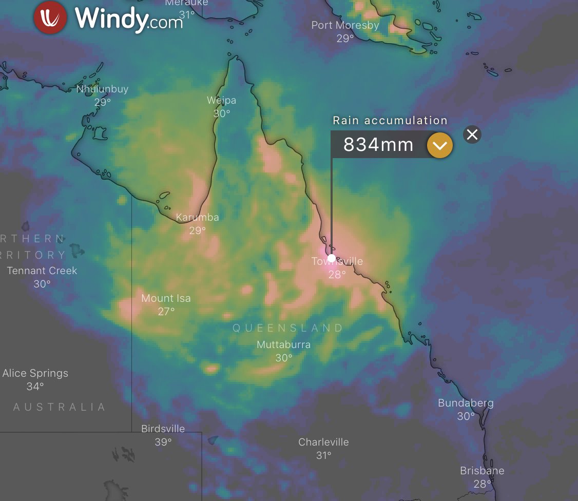 #bigwet#Townsville gonna be a bit wet in#wetseason rain >800mm forecast for next 3 days 3 day rain accumulation shownpic.twitter.com/dSzcXF3uGn