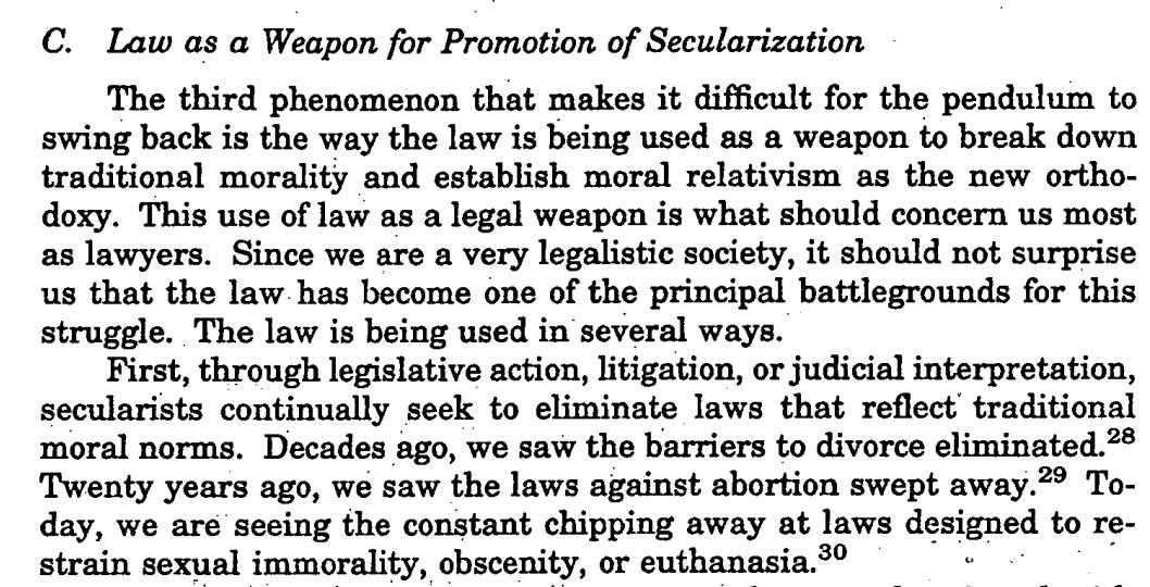 #BillBarr whose religious ideology/agenda media ignored. Decrying here "secularists" role in eroding "traditional morality" the elimination of barriers to divorce (gasp!) and the decriminalization of "sexual immorality" (gasp!) https://scholarship.law.stjohns.edu/cgi/viewcontent.cgi?article=2355&context=tcl … …pic.twitter.com/op8wstk8tL