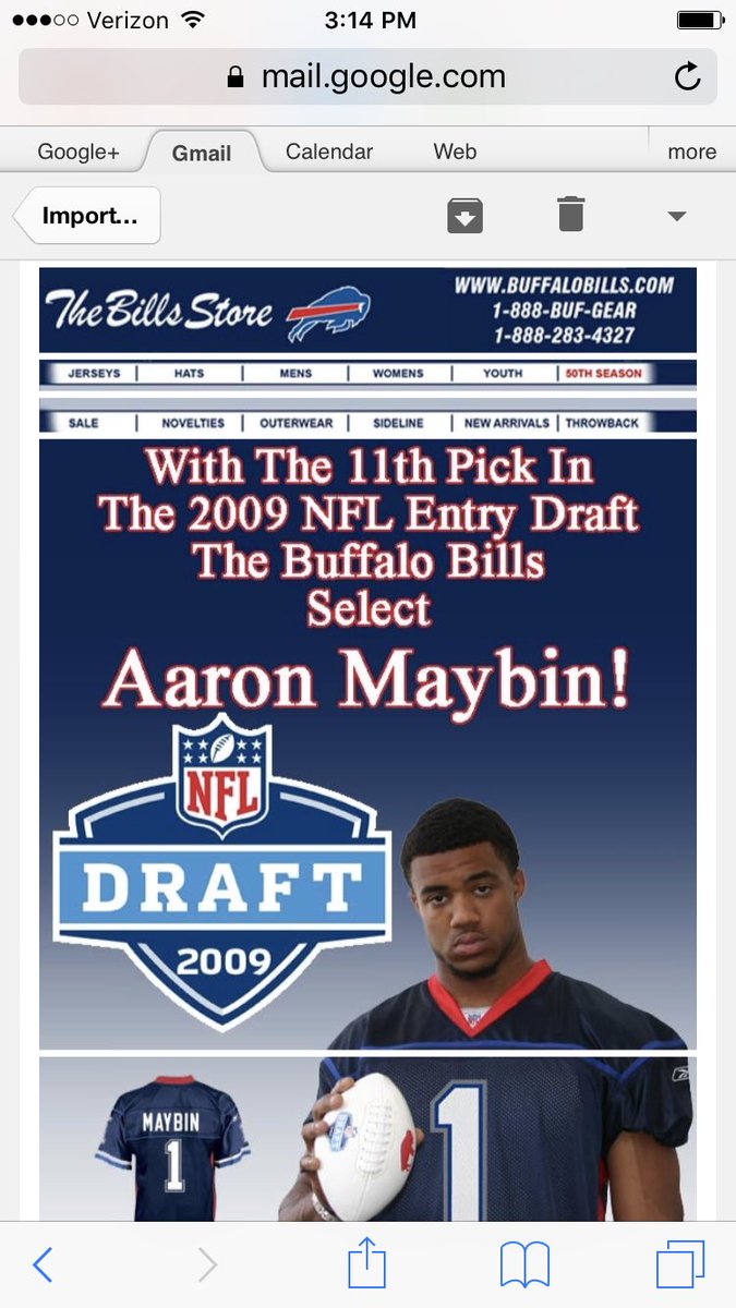 Logged into my old high school email and found this gem: "Order your Aaron Maybin jersey today!"