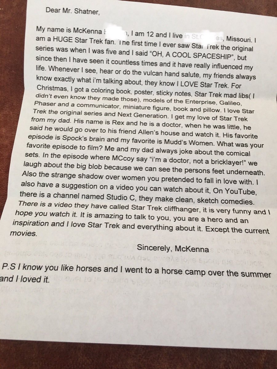 #BillsFanMail Dear McKenna, thank you for your letter. Sounds like you scored a lot of Trekphernalia for Christmas. Are you going back to horse camp this summer? Bill pic.twitter.com/LThwmCtrqA