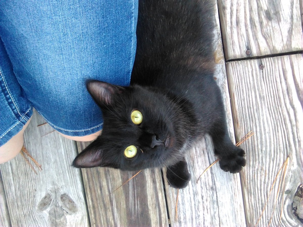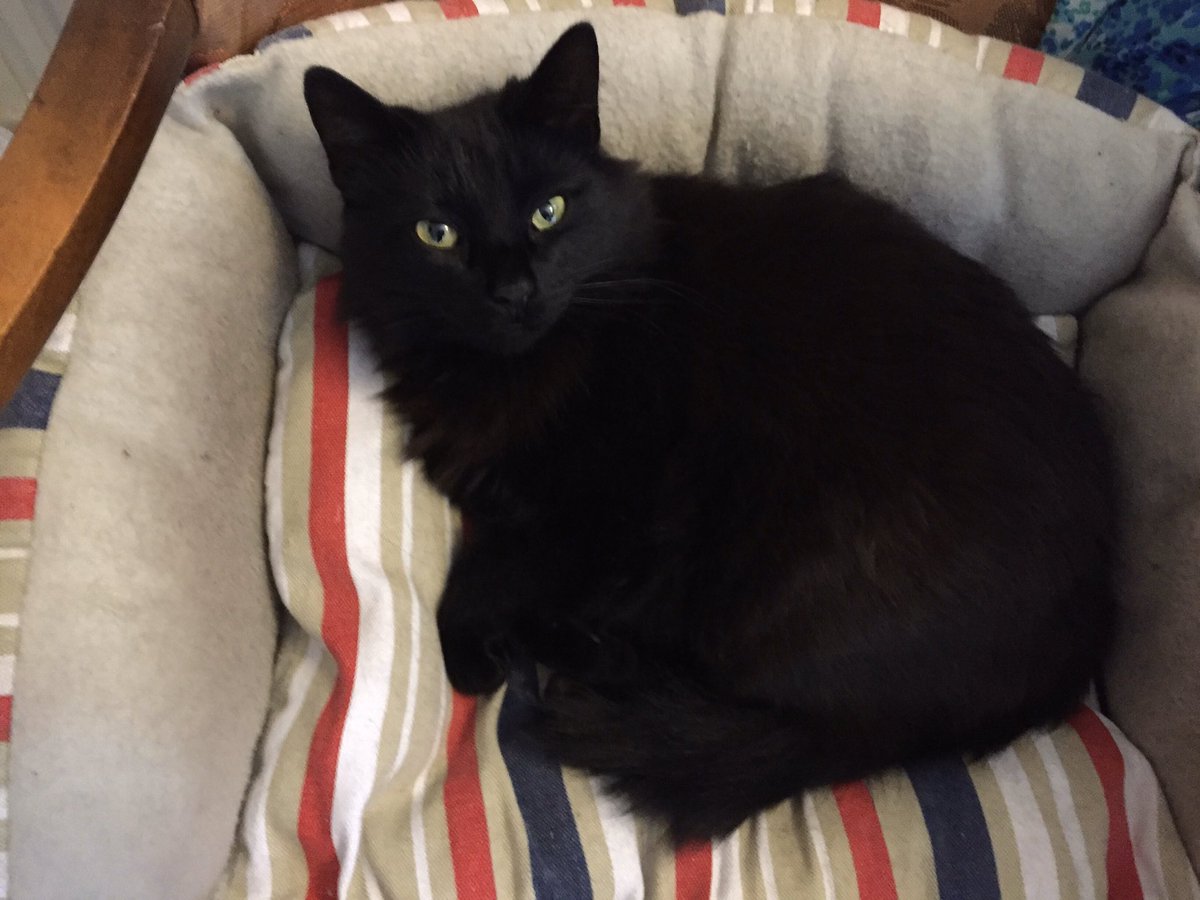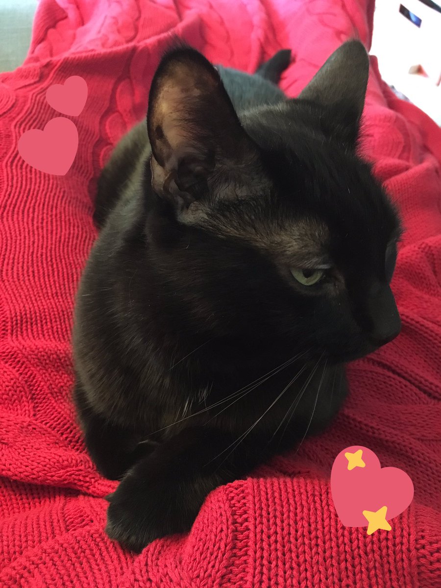 I miss her, she's been gone a year now, black cats are every bit as beautiful and loving as any other color cat, and they aren't bad luck! Black cats are often overlooked and not adopted just because they're black. Give a black cat a chance!