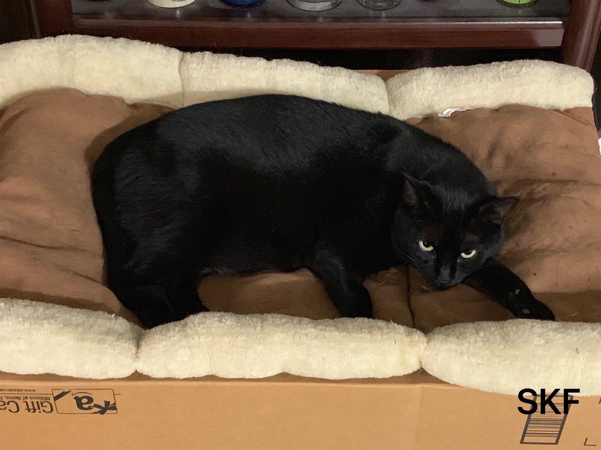 #BlackCatAppreciationDay so I asked her if I could toot. This my favourite bed. Mammy washed it in the summer and it didn’t smell right for ages. It’s ok now.