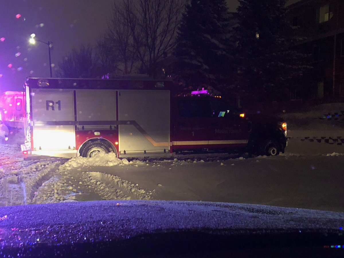 Minnetonka Rescue 1 (a 4 wheel drive vehicle) was challenged by the snow last night while returning from a public safety assist. We staffed extra crews yesterday in order to make sure we could quickly respond to emergency calls for service during