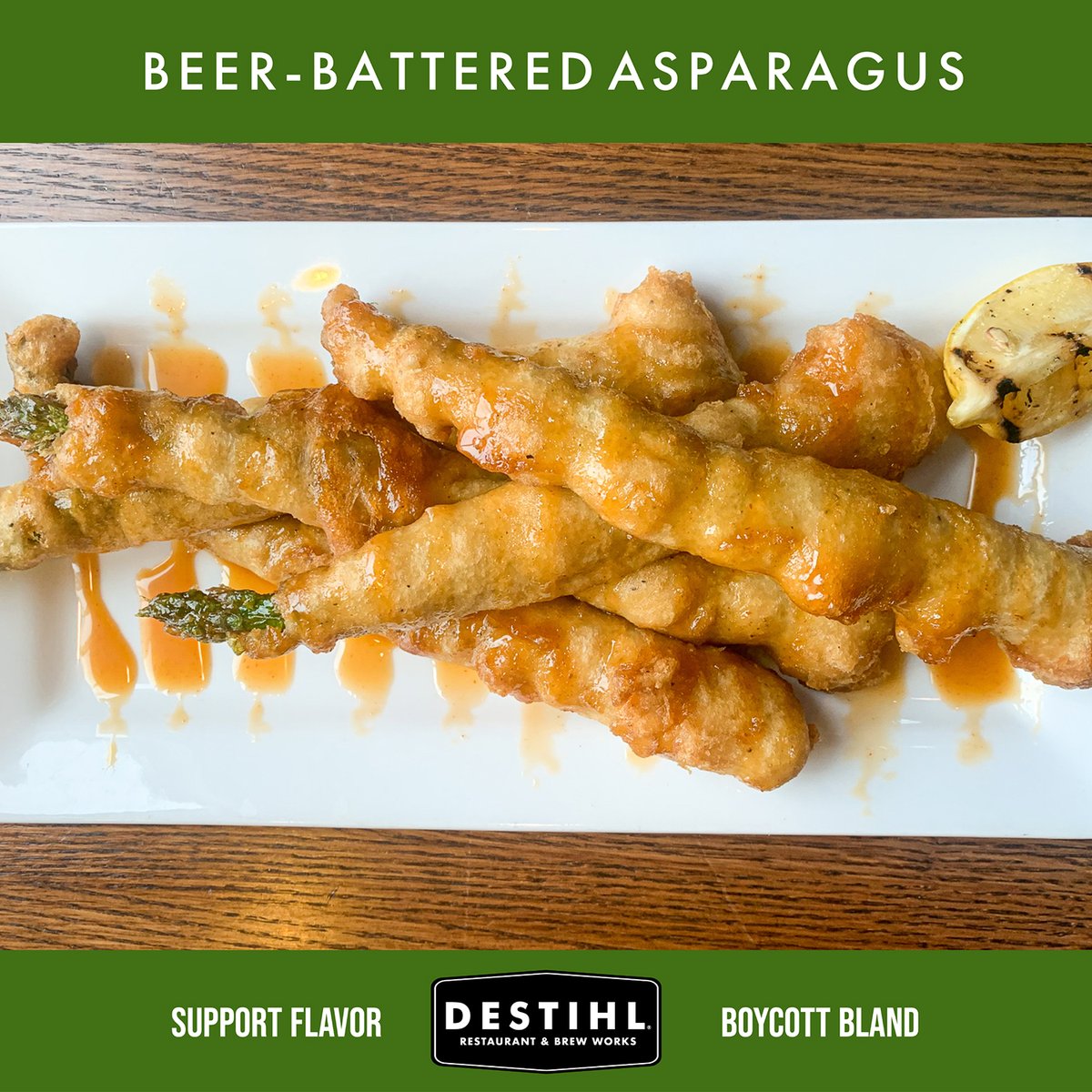 There's a reason the Beer-Battered Asparagus is one of our most popular appetizers! Could it be the light & crispy hefeweizen batter or the maple chipotle drizzle? Stop in and decide for yourself!