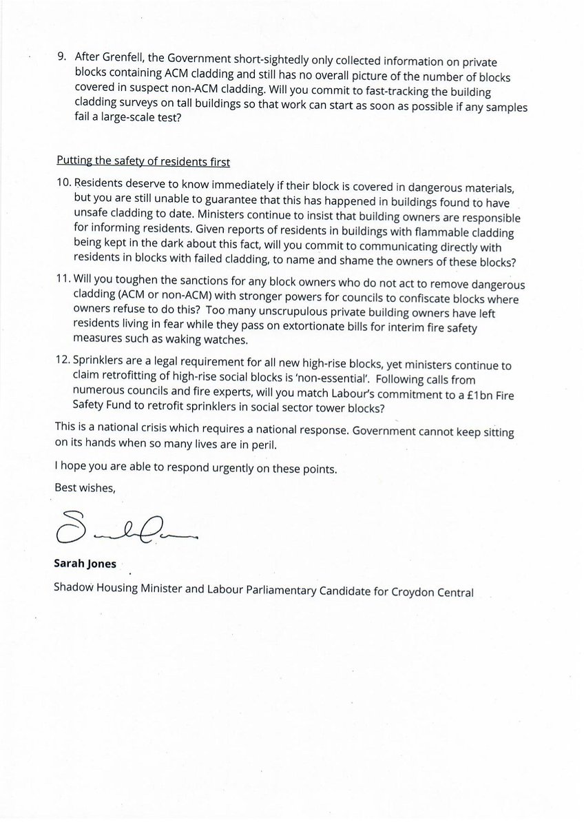 Today I wrote to the Housing Secretary setting out the serious questions the Government must answer after the