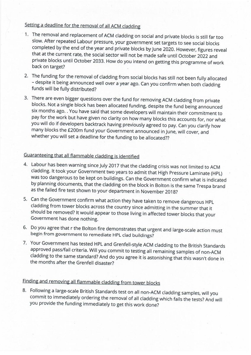 @EstherMcVey1 can give a more accurate answer to this question from@SteveReedMP than she did to whether the#boltonfire was over 18m? It seems obscure, but is key proof MHCLG knew combustible cladding was allowed by AD B and that they should pay for its replacement pic.twitter.com/Lp69lmtkQw