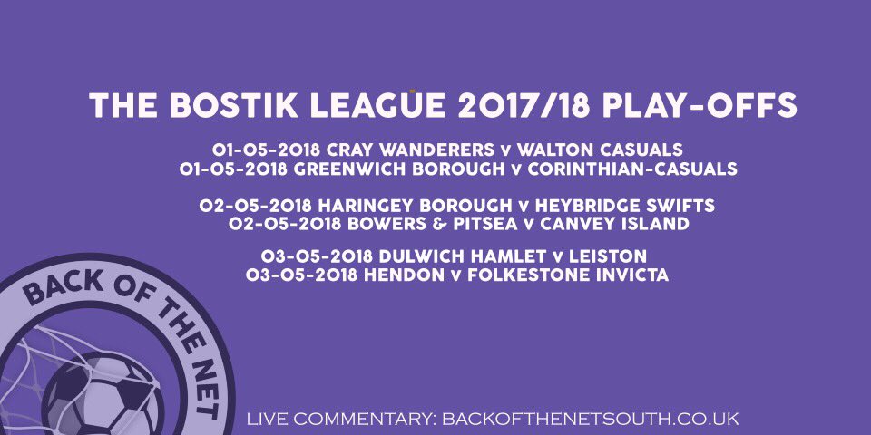 All #Bostik play-off semi finals and finals will be available to listen to via http://backofthenetsouth.co.uk