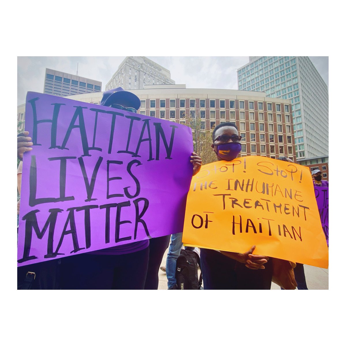Members of the Haitian community & supporters rally in Boston against deportations. They are calling on President Biden to stop the flights & grant asylum to Haitian citizens.
