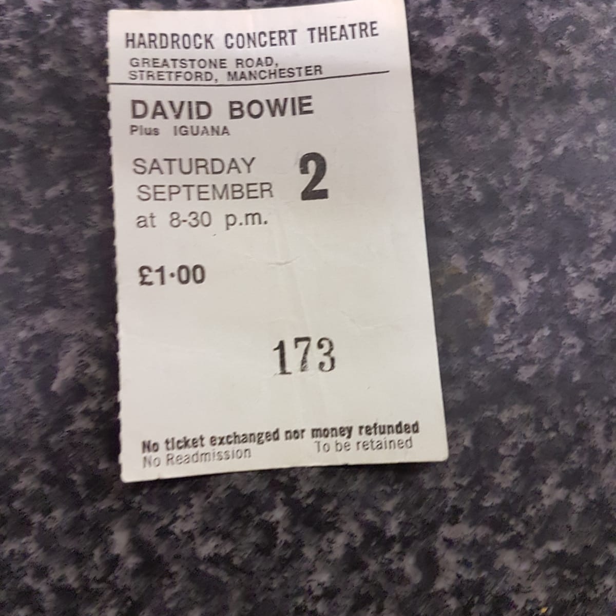 A bit of Stretford History - Ticket from September 1972 when Bowie Played the Hardrock (The old B&Q Site