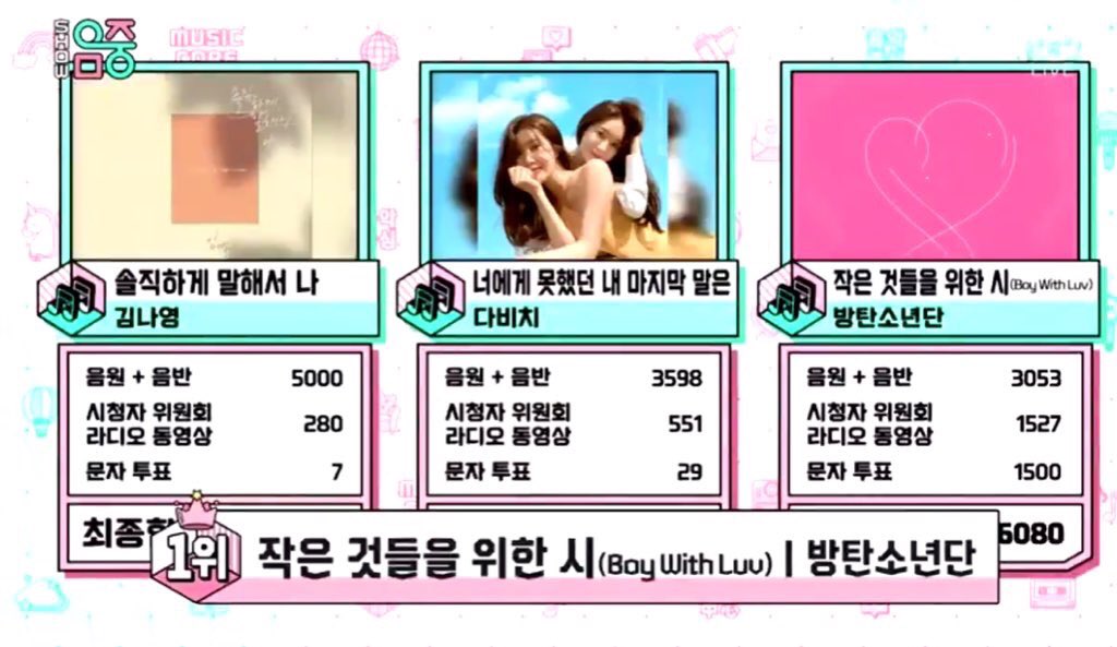 Boy With Luv получила 21-ю победу на музыкальном шоу став песней с самым большим количеством побед в этом веке ! Теперь BTS имеют в общей сложности 74 победы