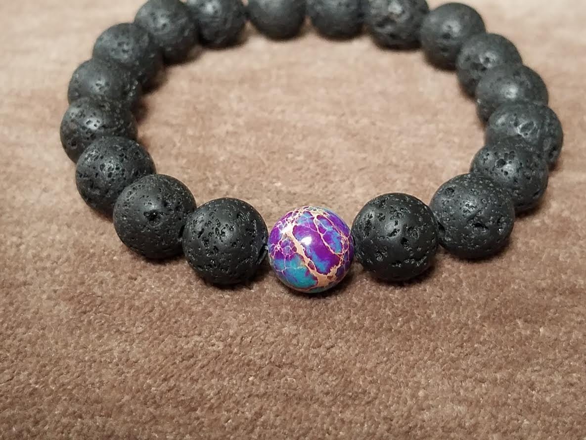 Just added! 10 mm Lava Bead and Galaxy Sea Sediment Jasper Bead Bracelet - Diffuser Bracelet https://etsy.me/2uBll97