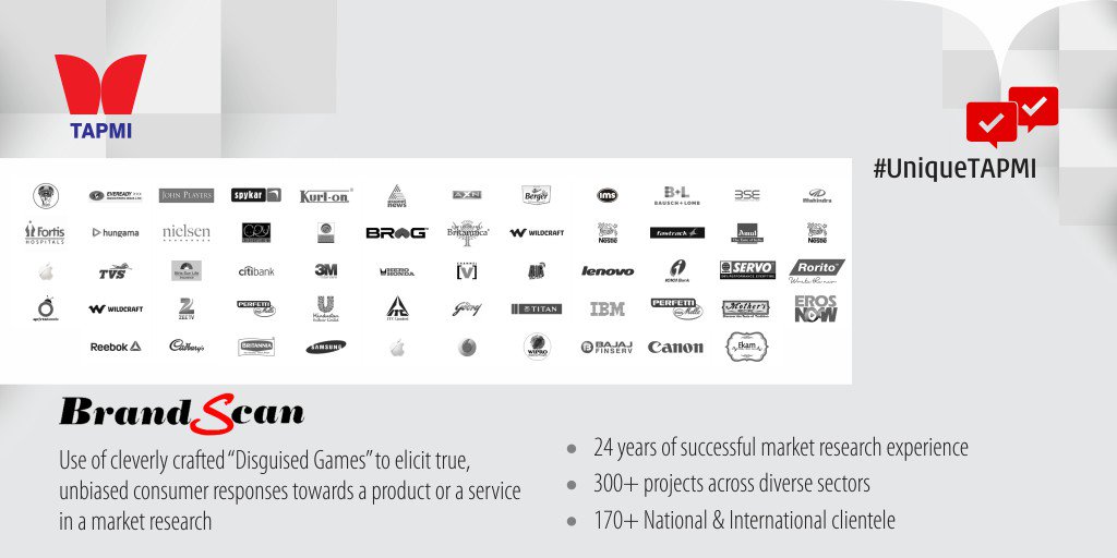 #BrandScan has a legacy of over 24 years of Market Research and has served 170+ National and International Clientele.#UniqueTAPMI#MyTAPMI pic.twitter.com/NgFBiG9bf9