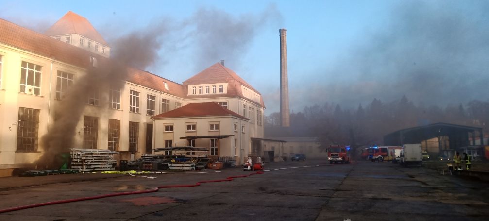 #Brandbekämpfung läuft weiter. Langsam zeigt sich das Ausmaß der#Zerstörungen. Den#Einsatzkräften und der#Bevölkerung ist offenbar unbekannt, was genau in der Firma hergestellt wurde. Der Betrieb liegt im nordöstlichen Stadtgebiet in einem Wohngebiet. #1982pic.twitter.com/Knc7UEEHs7