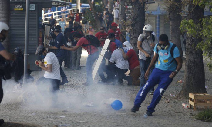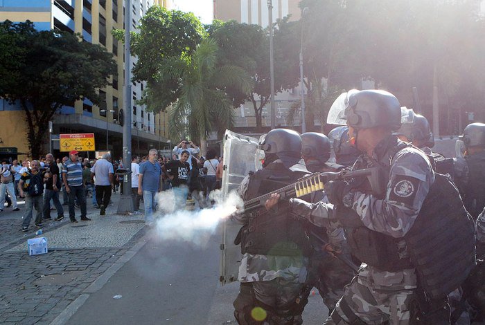 #Brazil: Police fire tear gas and rubber bullets during protests earlier today against the privatization of water company#CEDAE in Rio. pic.twitter.com/XKTsBr6EnUThe following media may contain sensitive material.