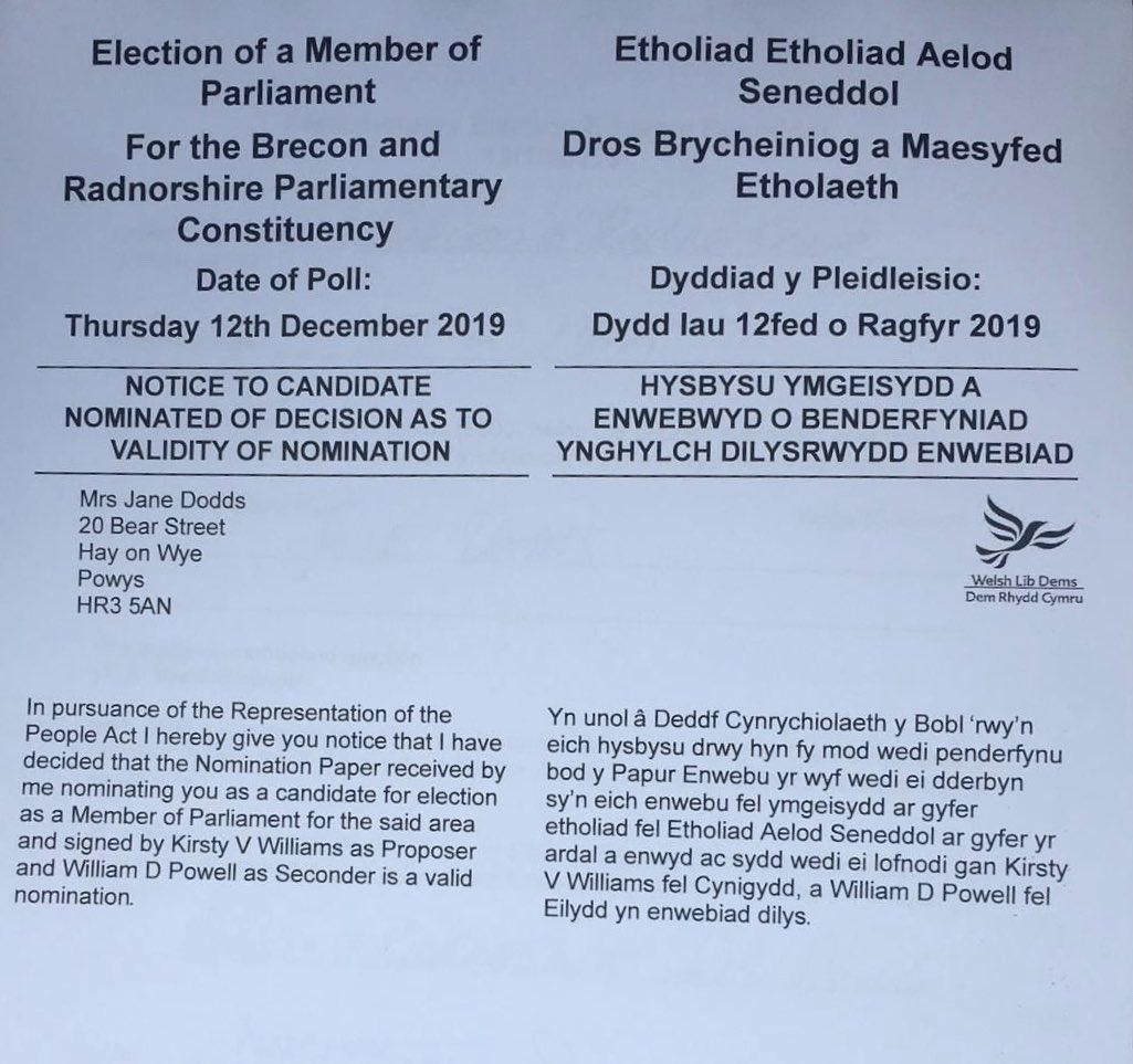 @DoddsJane has shown she makes an excellent MP who deserves to be returned. Voting@LibDems in#BreconAndRadnorshire is the only way of stopping a Tory-Brexit party pact candidate from getting to the House of Commons. https://twitter.com/DoddsJane/status/1194328064160870400 …