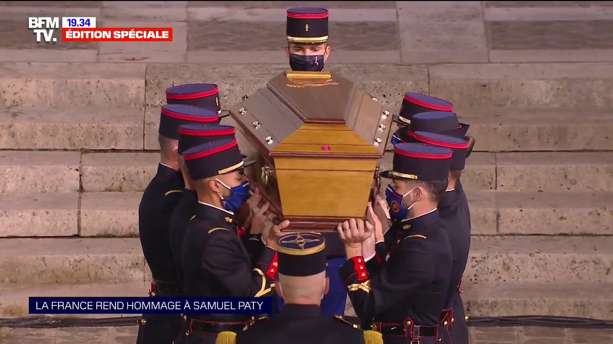 #SamuelPaty in Frankreich die letzte Ehre erwiesen wurde, ist im Deutschland von Angela#Merkel undenkbar. Die höchsten Vertreter der Republik, einschließlich Präsident#Macron, empfingen den Sarg im Ehrenhof der#Sorbonne. Erinnerungen an den#Breitscheidplatz werden wach. https://twitter.com/BFMTV/status/1318970203791708160 …