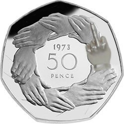 Astonishing that we should need to sever relations with our neighbours with whom 75 years ago we were at war in order to produce a coin celebrating peace and friendship. The greatest con trick ever foisted on this nation. I will refuse this coin if ever offered to me.