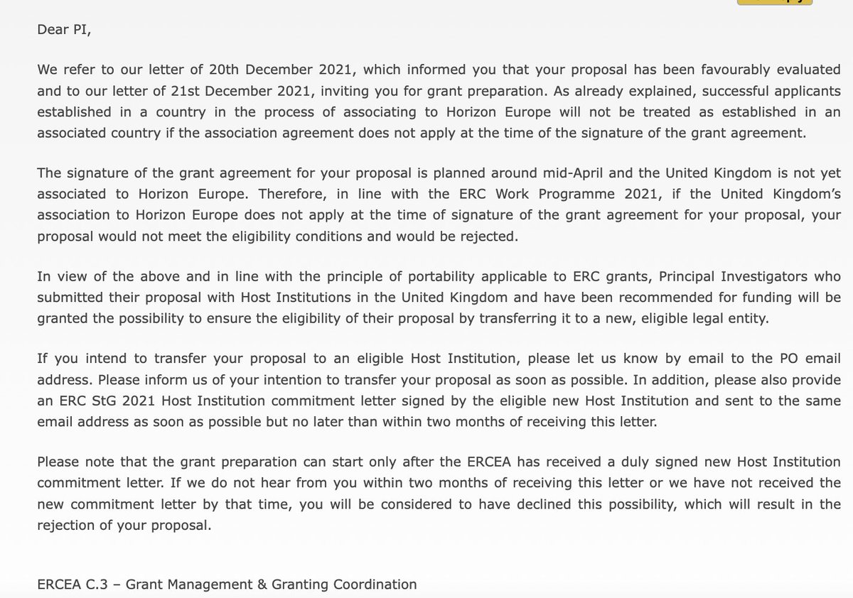 @ERC_Research to UK-based#ERC starting grant grantees... UK awardees will have two months time to move their grant to the EU proper, otherwise they will lose their STG. Thank you#Brexit#BrexitReality.pic.twitter.com/AnJeCrCQrZ
