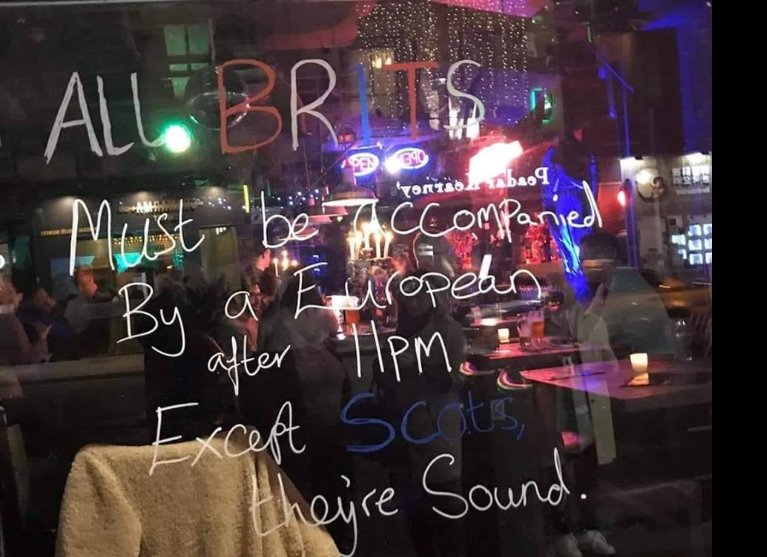 Spotted in Dublin.. "All Brits must be accompanied by a European after 11pm"