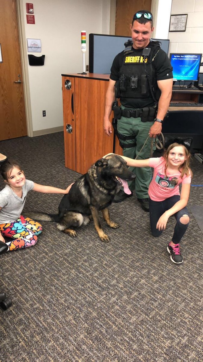 Deputy Carmack and K9 Shep stopped by the Dispatch Center today to greet kids for
