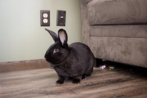 Raven is a young Flemish Giant/New Zealand mix from