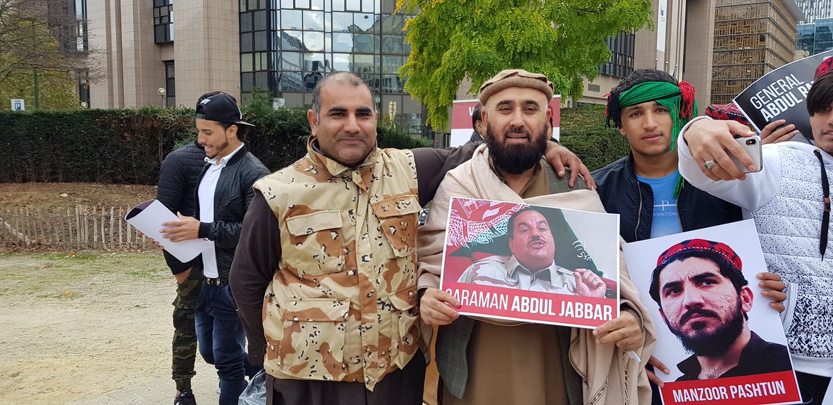 #Durandline held protest in front of European Parliament in#Brussels, they condemned killed of Gen Raziq and Jabar Qahraman and supported#PTMpic.twitter.com/0hGDPzThge