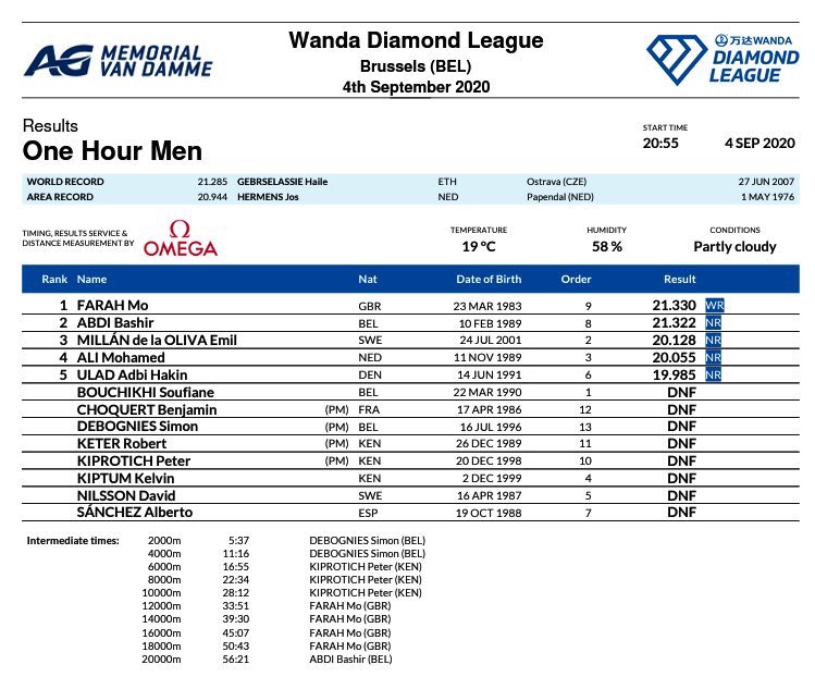 @Mo_Farah and@BashirAbdi7 for their unbelievable runs . Mo Farah sets a new WR of 21.330km in the One Hour.#BrusselsDL pic.twitter.com/kRHe8xySNC