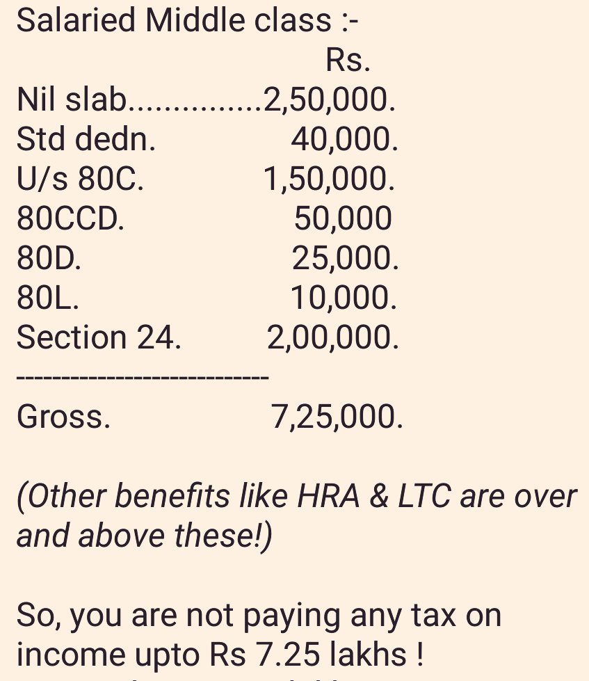 #ZeroTax for people with salary upto ₹ 7,25,000#Budget2014 -2018#ModiErapic.twitter.com/JSEpfWIw0z