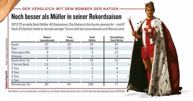 #Bundesliga. Will there be new record? Graphics from Kicker magazine. Comparison#GerdMüller, Timo Werner and#RobertLewandowskipic.twitter.com/2w20r2majo