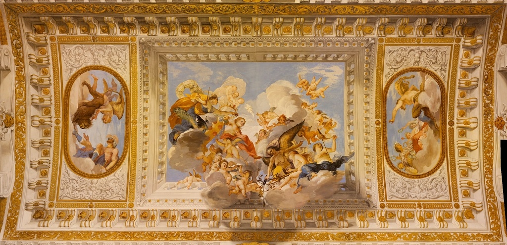 #Buongiorno dal Salone di#GiovannidaSanGiovanni al#TesorodeiGranduchi. Qui il pittore toscano affrescò l'allegoria dell'unione delle casate Medici e Della Rovere, avvenuta con le nozze di Ferdinando e Vittoria nel 1637#PalazzoPitti apre alle 13.30. Prenotazione nei weekendpic.twitter.com/8VyZ68Od1i