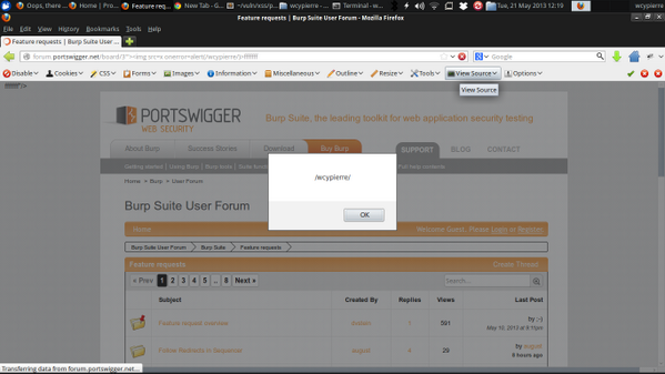 #XSS in#BurpSuite's forum http://forum.portswigger.net {Now Fixed}pic.twitter.com/MpCNqYGI4Q