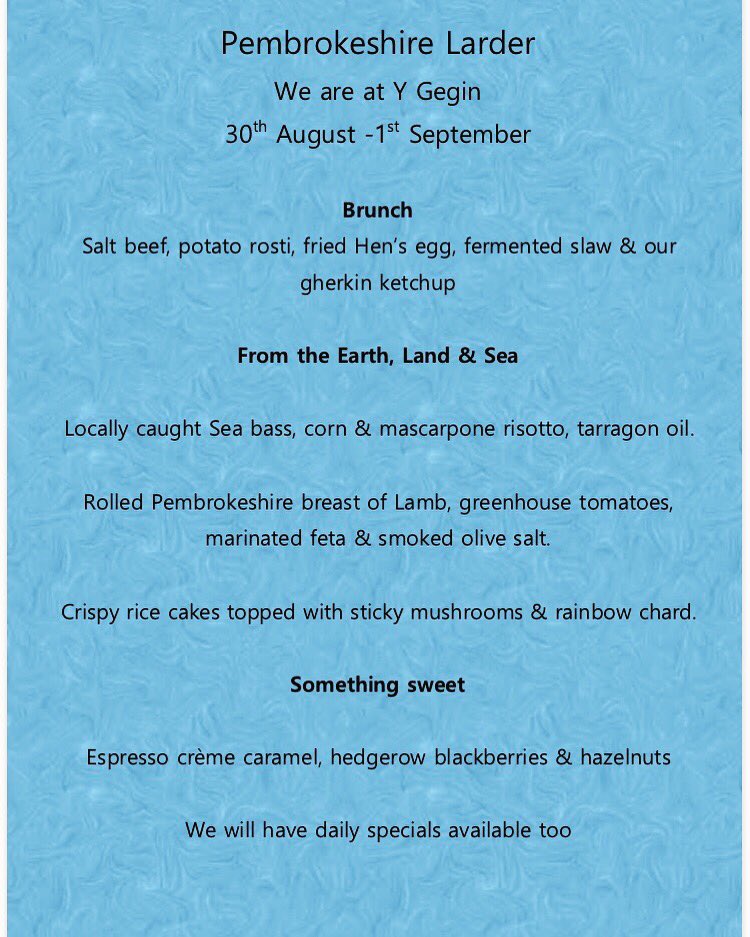 #pembrokeshire_larder joining us at Y Gegin this weekend.... we can’t wait to taste these dishes!#foodhall#bwydffres#visitwales#visitpembrokeshire#pembrokeshire#irishferries#pembrokedock#docpenfro#greatfoodpic.twitter.com/UTu0v9sJjC