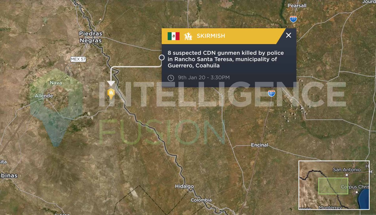 : 8 suspected #CartelDelNoreste gunmen were killed in a shootout with#Coahuila security forces near the municipality of Guerrero. -Firearms and tactical equipment bearing the letters "CDN" were seized following the incident@IntellFusion https://landing.intelligencefusion.co.uk/border-wall-report-migration-trafficking-unitedstates …pic.twitter.com/Da4m2JbOWQ
