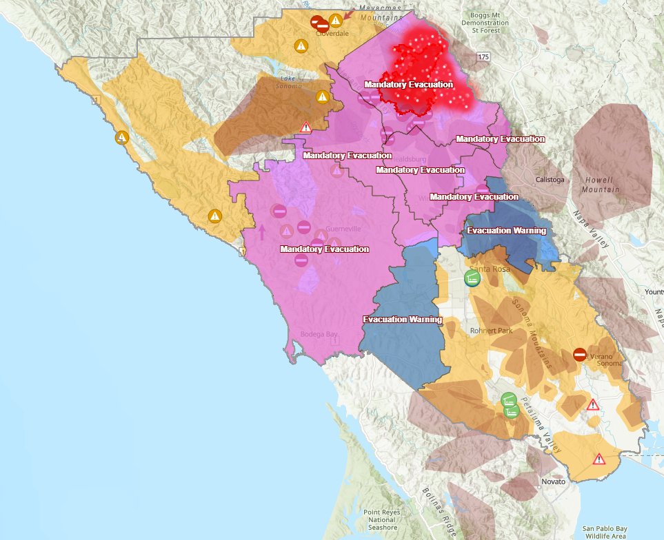 Here's the link to the Sonoma County Incident Map. It has the latest information on evacuations and other important safety data. http://sonomacounty.maps.arcgis.com/apps/webappviewer/index.html?id=2cb4401e1fc0494dbf9d9e22aa794617 …
