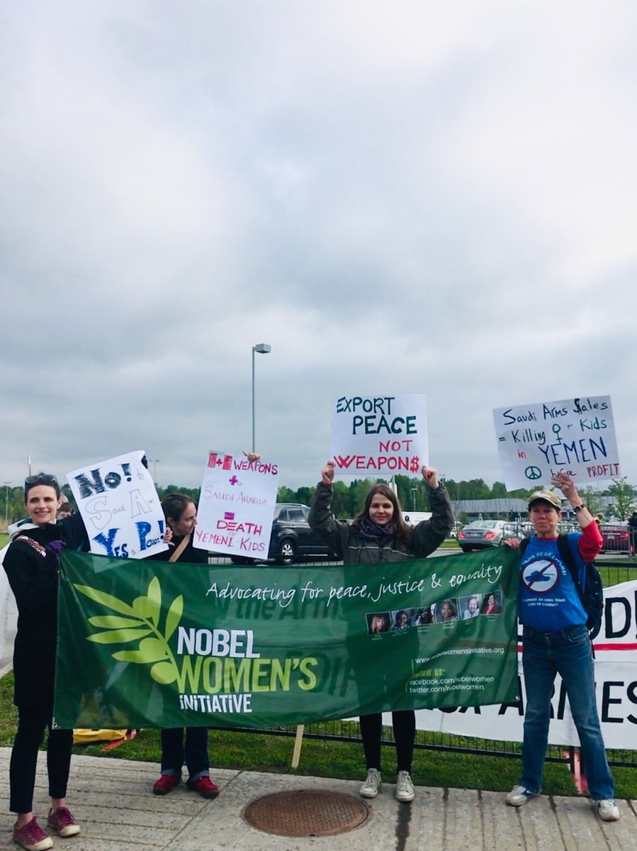 @nobelwomen team at#CANSEC2019#Canada biggest arms fair to say arms dealers not welcome in#Ottawa We want investment in#peace#life not#war#death. Weapons for Saudi Arabia kills kids in#Yemen#YemenCantWait#StopArmingSaudi#cdnpoli#ottcitypic.twitter.com/ukkxcnnm5G